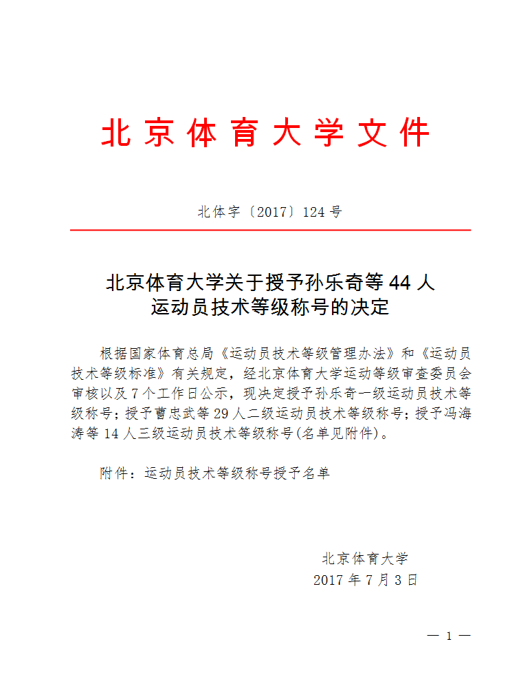 • 相关附件 : 运动员技术等级称号授予名单.pdf