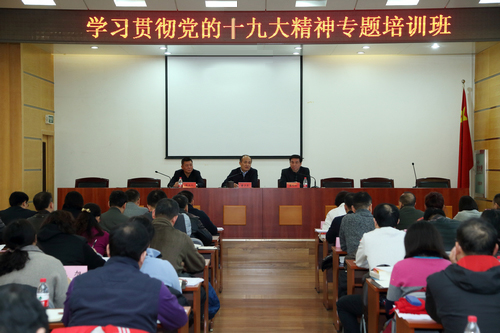 2017年12月18日,365体育在线备用学习贯彻党的十九大精神中层领导干部培训班开班。党委书记曹卫东同志传达了总局党组书记、局长苟仲文在总局系统学习贯彻党的十九大精神第一期集中轮训班上的讲话精神,并作开班动员。党委常委、副校长夏伦好主持开班仪式。